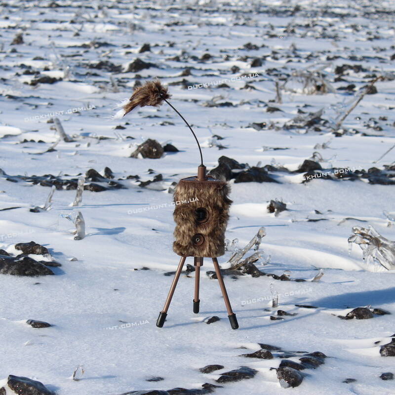 MOJO Super Critter предназначен для охоты на хищников, таких как: лиса, волк, енотовидная собака, серая ворона и др. Особенностью данного чучела является его простота и универсальность. Super Critter привлекает внимание не только периодическим движением "хвоста", но и звуком раненого грызуна. Хвост съёмный и имеет магнитный коннектор. Все устройство является одним целым и собрано в удобном пластиковом корпусе, в котором установлены: трёхпозиционная кнопка управления, двигатель с таймером, внутренний динамик и элементы питания- 4 АА батареи ( в комплект не входят), которых хватает до 20 часов работы. Выдвижные ножки очень удобны при установки чучела в местах, где есть растительность. Трёхпозиционная кнопка имет три положения: 1. Вращение без звука; 2. Вращение со звуком (звук включается после 2-х минутной паузы и продолжается 70 сек с паузами в 20 сек); 3. Нейтральное положение-выключение. Чучело можно устанавливать на любой штатив от фотоаппарата, а так же на стойку от чучела MOJO BABY.