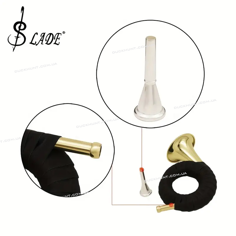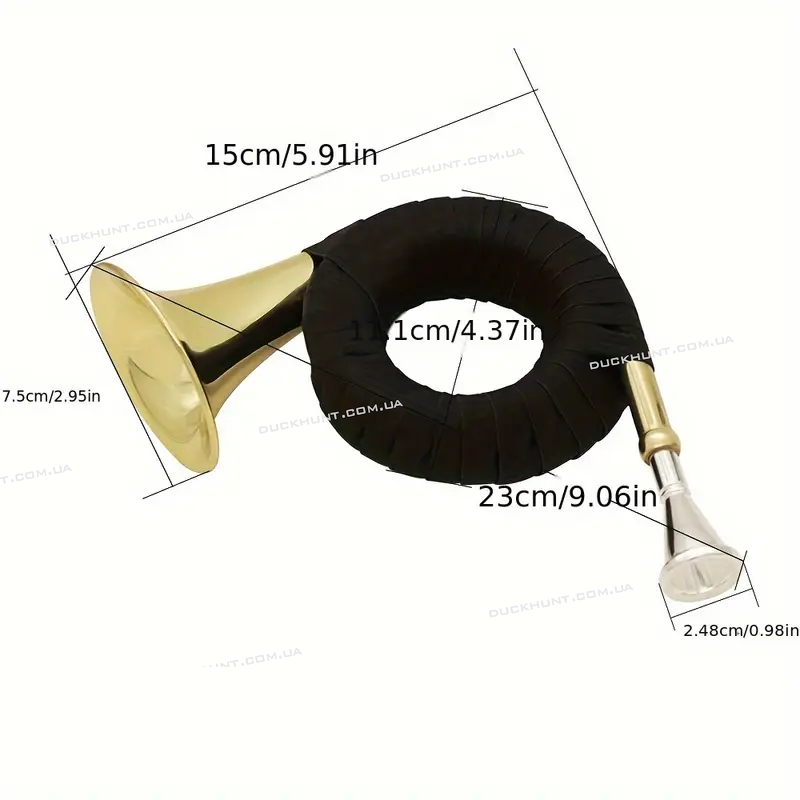 Горн охотничий Slade Hunting Horn. Материал: латунь. Применяется для подачи сигналов на охоте и состязаниях. Охотничий горн не только составляющая культуры, которую сегодня стараются возродить охотники, но средство общения между участниками охоты, а так же инструмент для управления собаками на охоте или на состязаниях. Качественные охотничьи горны, имеющие мощное и красивое звучание, способны разносить звук на расстоянии до 5-7 км.