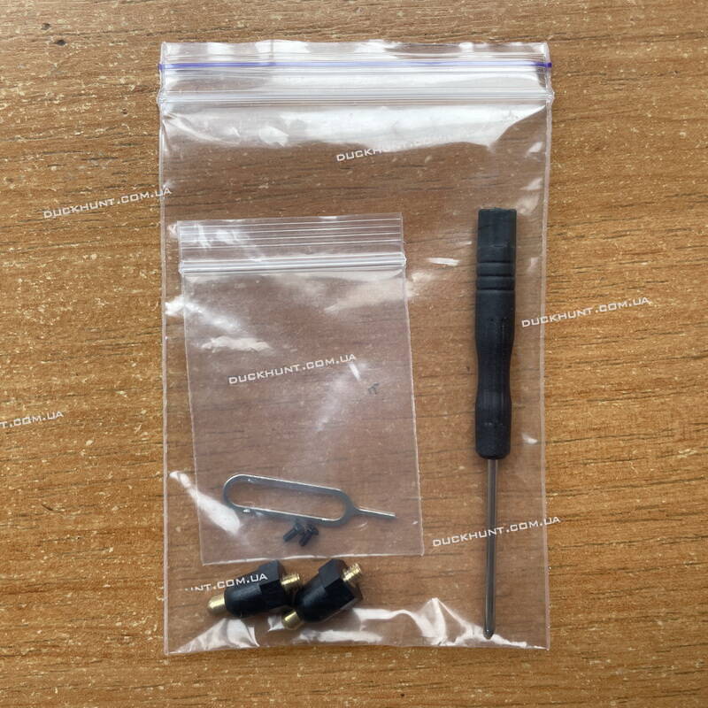 Набір запасних частин для GPS трекера ICAR 122. В комплект входить: 2 контакти електростимуяції, 2 гвинтики для слота карти, ключ-скріпка для вилучення SIM картки, викрутка.